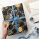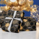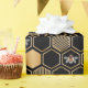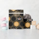 Dieses zeitgenössische Design zeichnet sich durch ein geometrisches goldenes Bienenmuster, Hummeln und einen schwarzen Farbhintergrund aus.