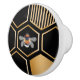 Dieses zeitgenössische Design zeichnet sich durch ein geometrisches goldenes Bienenmuster, Hummeln und einen schwarzen Farbhintergrund aus.