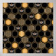Dieses zeitgenössische Design zeichnet sich durch ein geometrisches goldenes Bienenmuster, Hummeln und einen schwarzen Farbhintergrund aus.