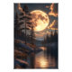 An art piece that captures the magic of a full moon illuminating the night landscape, with golden reflections on the lake and the shadows of trees dancing in the water. It's a moment of charm and tranquility perfectly captured.
