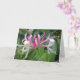Leere Karte mit einem hübschen nahen Foto einer rosa Honigsauckle-Blume