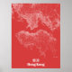 Ein Poster zeigt eine Karte der Straßen von Hongkong, bekannt für seine gastronomische Affäre, das pulsierende Nachtleben, die schönen Tempel und die zauberhafte natürliche Schönheit.