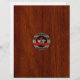 Ein Orchideensymbol aus dem Siegel Hongkong verchromt, wie ein Ruby-Feuerinlay auf einem Mahagoni-Holzkornprint-Hintergrund, der auf diesem edlen Geschenk für sich selbst oder für jemanden, der auf Ihrer Liste besonders ist, angeboten wird.