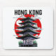 Hongkong Retro-Logo mit traditionellem asiatischen Tempel.