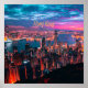 Hongkong Wolkenkratzer Skyline Nacht Lichter Rosa Wolken untergehen Sonnenschein schöne Wasserstraße