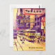 Die Vintage Hongkonger Straße mit Geschäften und Straßenbahnen auf der Insel Hongkong. Reisefotografie im Vintagen Stil. Farbenfroh und Retro Hong Kong.