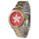 Ein Weißorchid-Blume-Symbol auf der Flagge Hongkongs auf Feuerrot, das auf diesem feinen, individuellen Modeuhr-Geschenk angeboten wird, um sich selbst oder für jemanden, der auf Ihrer Liste besonders ist, etwas zu machen.