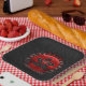 Ein Orchideensymbol aus dem Wappen von Hongkong, silberfarben wie rubinrotes Inlay, auf einem Hintergrund aus schwarzem Kohlefaser, das auf diesem edlen Geschenk für sich selbst oder für jemanden, der auf Ihrer Liste steht, angeboten wird.