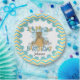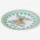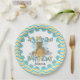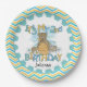 PapierTeller des Honig-Bärn-2. Geburtstages, ein niedlicher und Spaßentwurf, der einen braunen Teddybären mit einem Bienenbienenstock, Hummelbienen, Blumen kennzeichnet, Text, der ihn liest, ist mein 2. Geburtstag, ein blauer dekorativer Ring und eine Grenze von Blauem, von aquamarinem, Gold und weiße Zickzack Streifen. Fügen Sie leicht den Namen des Geburtstagskindes diesem Honigbärn-Papier-Teller hinzu, um sie zu personifizieren!