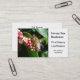 Eine Visitenkarte, die für jede mögliche Biene passend ist, bezog sich Geschäft. Sie kennzeichnet eine Fotografie einer Honigbiene, die Nektar und Blütenstaub von den rosa und weißen Blumen eines blühenden Baums sammelt. Das Foto der Biene wurde nahes genug, dem Sie die Adern in den Flügeln sehen können, die Haare auf ihm ist Körper genommen und der Blütenstaub, den er bereits auf ihm gesammelt hatte, ist Bein.