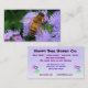 Diese Visitenkarte ist eine Anzeige für Honig. Sie kennzeichnet eine goldene gestreifte Honigbiene, die beschäftigt eine lila Ageratumsblüte bestäubt. Die reizenden lila Blumen und das leuchtende grüne Laub fügen dem herrlichen, sonnigen Sommer-Gefühl hinzu. Aller Text kann besonders angefertigt werden, um Ihren Bedarf des persönlichen Geschäfts zu passen.