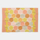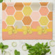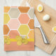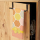 Buntes Geschirrtuch getan in einem stilvollen Honigkammmuster. Niedliche Grafiken der gelben Hummelbienen verzieren die Spitzen- und Unterkanten des Tuches. Fertigen Sie besonders an, um Ihren eigenen Text zu addieren.