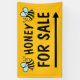 Honig zum Verkauf Bannerzeichen für Imker. Enthält den Pfeil für die Wegbeschreibung. Pfeildrehen für links oder rechte Richtung. Verkaufen Sie Honig und verwandte Produkte aus eigener Bibliothek, Garten, Zuhause, Bauernhof, Markt, Geschäft, Lebensmittelgeschäft, Büro, Unternehmen, Geschäfte, Haustiere etc. Einfache, auffällige Wegbeschilderung mit Hummellogo und gelber Hintergrundfarbe. Marketing aus Bienenzucht