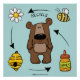 Ein niedlicher Bär steht in der Bildmitte, wobei die Pfeile von der Hummeln zur Blume zu einem Bienenstock zu einer Honigflasche zum Bären gehen. Die Beschriftung lautet: "Recycle". Niedliches Bild, um auf die Bedeutung des recycelnd zu verweisen. Originelles Design von Christie Black von Kreationen aus dem Herzen.