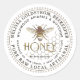 Custom Honey Label mit Vintager stilisierter Illustration von Honigbienen in Taupe und Gold. Das Honigwabmuster im Hintergrund. Das Wort "HONEY" ist in einem Schriftart mit metallischem goldverziertem Dekor geschrieben. Punktierte Kreislinie. Personalisieren Sie Ihre Daten mit Ihrem Namen, Ihrer Bibliothek, Ihrem Standort und Ihrem Handy.