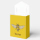 Honigbiene mit offenen Flügeln. Benutzerdefinierte Hintergrundfarbe. Benutzerdefinierter Text auf beiden Seiten.