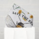 Große Illustration einer Biene und einige gelbe und blaue Blumen mit der großen Botschaft "Rett die Bienen" und Text mit zehn Tipps, wie man bienenfreundlich, perfekt für decouvertes Kunsthandwerk oder Geschenkpackung für Bienen- und Naturliebhaber, Imker..