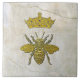 Eine goldene Honigbiene und Krone mit saphirfarbenen SteinenDas hintere Muster imitiert getragenes Gips.