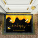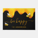 Ein schicker schwarzer Hintergrund mit goldtropfendem Honig. Der Text: Bee Happy mit einem goldenen handgeschriebenen Stil Skript mit Swashes. Personalisieren und fügen Sie Ihren Namen, Familiennamen.