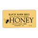 Honigetikett mit geschliffener metallischer Honigwabenunterlage mit stilisierten Bienen und gestrichener Grenze. Schwarzer Text auf gelbem Hintergrund.