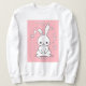 Dieses niedliche Kaninchen auf einem zarten rosa Hintergrund sieht so charmant und lustig aus, dass es nicht umhin kann, das Auge zu erfreuen und Sie zum Lächeln zu bringen. Dieses Design spiegelt die verspielte Freude des Frühlings und des Glücks wider und eignet sich perfekt für Kinder, Kaninchenfreunde und alle, die die charmante Kunst schätzen. Es wird eine wunderbare Dekoration für Sweatshirt sein und eine fabelhafte Atmosphäre schaffen.