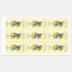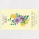 A cute bumblebee gently sits among two delicate lavender flowers and fresh green leaves, all set against a soft creamy yellow backdrop with yellow honeycomb design