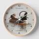 Fügen Sie mit dieser Uhr zum Thema Wildtiere eine Touch der Natur hinzu! Passen Sie die Zahlen an oder ohne Zahlen an und wählen Sie aus runden oder quadratischen Designs. Ideal für Vogelliebhaber! Man kann viel bewundern, wenn man ein Hooded Merganser ist. Wappen sind Ihre Spezialität, egal ob Sie männlich oder weiblich sind. Die Damen haben hübsche Zimt-Wappen, und die Herren aufblasbare schwarz-weiße Zahlen, ergänzt durch einen schwarzen Tux, der für alle Jahreszeiten mit einem rötlich-braunen Schwanz an den Seiten passt. Basierend auf der Originalfotografie von W.H. Sim. Alle Rechte vorbehalten. Weitere Informationen unter zazzle.com/walkswithnature