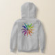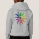 Farbräder, die in stilisierten Blätter dargestellt sind, die sich von der Kreismitte abheben. Grosses Rad auf der Rückseite, kleines Rad auf der "Tasche" des Shirts vorne. Personalisieren Sie die Front mit Namen. Großartiges Geschenk für den visuellen Künstler.