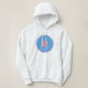 Ladies hoodie with hand-drawn mandala design. Blues with pink centre to highlight.