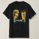 Die lustigen Hooligans in Minion-Gläsern halten eine Box mit der Aufschrift