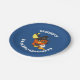 Das sind niedliche Teller für jedes Halloween-Party, aber besonders für Kinder! Sie sind mit einer hellen orangefarbenen Eule in einem Hexenhut gekleidet und vor einem gelben Halbmond und einer schwarzen Fledermaus auf einem Besen gekrönt. Auf der einen Seite ist ein winziger weißer Geist, und eine Spinne hängt vom Hut der Eule. Das gebogene Weiß über und unter dem Uhu-Bild sagt "Happy Halloween". Das Bild und der Text werden auf einem dunkelblauen Hintergrund des Nachthimmels platziert. *Dank Real Deal Clipart für den Clipart, der dieses Design erstellt hat.
