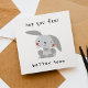 Diese lustige Karte ist der perfekte Weg, um jemandem eine schnelle Erholung zu wünschen. Das Design enthält ein niedliches Hasen mit lustigen Typografieworten, die "Hop you feel better soon" ausdrücken. Die Kartenrückseite ist leer, damit Sie eine persönliche Nachricht schreiben können, oder Sie können mehr typisierte Formulierungen oder ein Foto Ihrer Wahl hinzufügen, indem Sie auf die Schaltfläche Bearbeiten klicken.