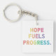 Die Phrase "Hope Fuels Progress" wird in einer lebhaften Farbpalette dargestellt, die ein Gefühl von Optimismus und Energie weckt. Die dynamische Typografie und die kühnen Farbpaletten unterstreichen die kraftvolle Botschaft, wie man positive Veränderungen und Fortschritte vorantreiben kann.