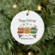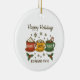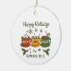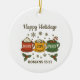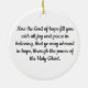 Fun holiday ornament with a cute design of red, yellow and green cups of cocoa and the words hope, joy and peace on them, with whipped cream marshmallows and a candy cane. Happy Holidays and a scriptural message Romans 15:13 "Now the God of hope fill you with all joy and peace in believing, that ye may abound in hope, through the power of the Holy Ghost" on back.