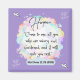 Mit diesem schönen quadratischen Magneten lockern Sie Ihre Kräfte und lassen den Tag hell werden. Dieser inspirierend Magnet vermittelt eine Hoffnungsbotschaft auf der Grundlage von Matthew 11:28 (Berean Standard Bible - BSB): "Komm zu mir, alle, die müde und belastet sind, und ich werde dir Erholung geben." Hoffnung ist mehr als nur ein Wunsch. Es ist der Anker, der uns während der Stürme des Lebens bestockt. Es ist die freundliche Stimme, die Ermutigung flüstert, wenn wir uns überwältigt fühlen. Es ist der Glaube, dass selbst in den dunkelsten Zeiten immer Licht am Horizont ist. Dieser Magnet dient als tägliche Erinnerung, die Hoffnung aufrecht zu erhalten, ein Versprechen, dass Frieden und Frieden immer in Reichweite sind. Zeigen Sie es auf Ihrem Kühlschrank, Ihrem Schließfach oder einer beliebigen Metallfläche für eine konstante Inspirationsdosis. Es ist ein perfektes kleines Geschenk, um eine Botschaft der Hoffnung mit Freunden, der Familie oder selbst zu teilen.