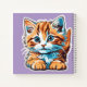 This little notebook is very colorful there is a dark purple back round and a sweet orange kitten on the front and back, the back is a lavender color. The kitten is a cartoon drawing and the kitten is waiting for mischief.