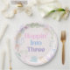 Make your little one’s celebration extra sweet with these adorable “Hoppin’ Into Three” birthday Plates. Featuring soft pastel lettering and charming bunny illustrations, these plates are perfect for a whimsical 3rd birthday party.