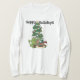 Frosch Hoppy Holidays T - Shirt, Tasse, Magnete, Karten, Aufkleber, Schlüsselanhänger, Mousepads, und andere Urlaubskleidung und Geschenke mit einem Frosch und Weihnachtsbaum Design.