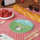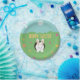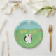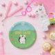 Fun Paper Platte mit einem lustigen weißen Hase, dass Pop aus seinem Kaninchenloch mit dem Wort pun Hoppy Oaster.