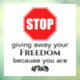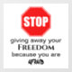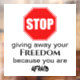 Dieses Design hat ein rotes Stoppschild. Zusammen mit dem Sprichwort aufhören, Ihre Freiheit zu verschenken, weil Sie Angst haben, in schwarz Schrift auf einem weißen Hintergrund.