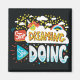 Niedliches buntes "Stopp Dreaming Start Doing" Zitat mit Regenbögen, Sternen und Einhornkopf.