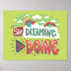 Niedliches buntes "Stopp Dreaming Start Doing" Zitat mit Regenbögen, Sternen und Einhornkopf.