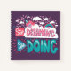 Niedliches buntes "Stopp Dreaming Start Doing" Zitat mit Regenbögen, Sternen und Einhornkopf.