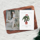 Illustration der Hauspflanze in Santa Anzug Topf mit Weihnachtsmannmütze überzogen. Im Text steht: "Hör nicht auf, Blatt zu machen." Personalisieren Sie den Namen, das Jahr und das Foto.