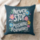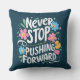 Hören Sie niemals auf, florale Typografie voranzut Kissen