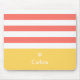 Moderne breite Streifen Muster Mousepad in Korallenorange und hellgelb. Personalisieren Sie das, indem Sie Ihren Namen unter dem schicken Retro-Logo hinzufügen.