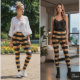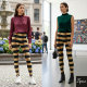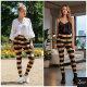 Horizontal Stripe Black Gold Metallic Glossy Leggings