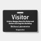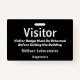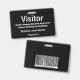 Horizontal Visitor's Pass Abzeichen in modernem Schwarz-Weiß-Design. Alle Elemente sind veränderbar oder abnehmbar. Zu den Elementen gehören: Besucher (kann sagen "Gast" oder "Pass" oder anderes Wort, die Phrase "Besucher Abzeichen muss zurückgegeben werden, bevor das Gebäude, Firmenname, Abteilung Unternehmen, Security Barcode Scan ist auf der Rückseite und kann geändert oder entfernt werden. Auch in vertikaler Ausrichtung in diesem Laden erhältlich. Stecken Sie oben für den Lanyard.