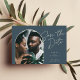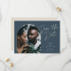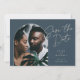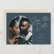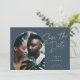 Die elegante Save the Date-Optik mit einzigartigem Layout weist ein vertikales Foto in gewölbter Form auf einem üppig-blauen Hintergrund mit "Save the Date" in weißlicher Schriftzeichen auf. Personalisieren Sie Ihre Namen, das Hochzeitdatum und den Ort, und fügen Sie zusätzliche Details auf die Rückseite. Ein atemberaubendes Design in einer üppigen Farbpalette für die Ankündigung Ihrer Hochzeit.