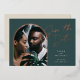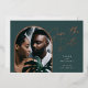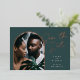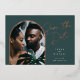 Die elegante Save the Date-Optik mit einzigartigem Layout weist ein vertikales Foto in gewölbter Form auf einem üppig grünen Hintergrund auf, mit "Save the Date" in Rose mit Goldfolie und Schriftzypografie. Personalisieren Sie Ihre Namen, das Hochzeitdatum und den Ort, und fügen Sie zusätzliche Details auf die Rückseite. Ein atemberaubendes Design in einer üppigen Farbpalette für die Ankündigung Ihrer Hochzeit.